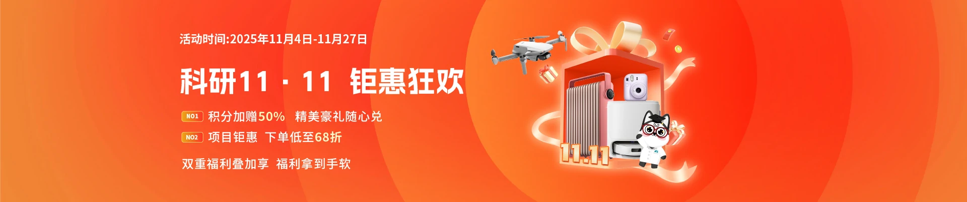 在活动期间下单,订单完成并结算后,每笔订单可得实付金额 50% 的额外积分奖励,上不封顶,和下方项目折扣活动同享~(如订单实付金额为1万元,在享受原积分赠送的基础上,可再额外加赠5000积分~)