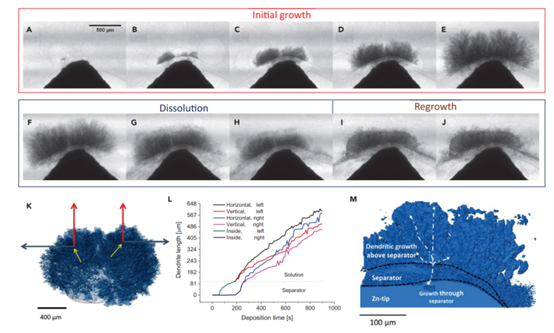 揭秘枝晶生长对锌离子电池寿命的影响 非均匀沉积:在循环过程中, Zn2 ⁺ 在电极表面沉积时容易受局部电场和界面能影响,优先生长于突起部位,形成 “ 尖端效应 ” 。 界面副反应: 水分解、氢析出和腐蚀会导致 Zn 表面形成 “ 死锌 ” ,加剧局部电流密度不均匀。 离子传输限制: 隔膜和电解液中...