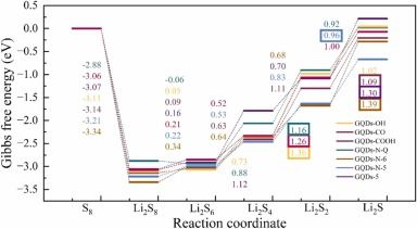 精确模拟多硫化锂(Li₂Sₓ)在主体材料(如碳、极性化合物)上的吸附能,计算其转化反应的反应能垒,揭示抑制穿梭效应的微观机制。