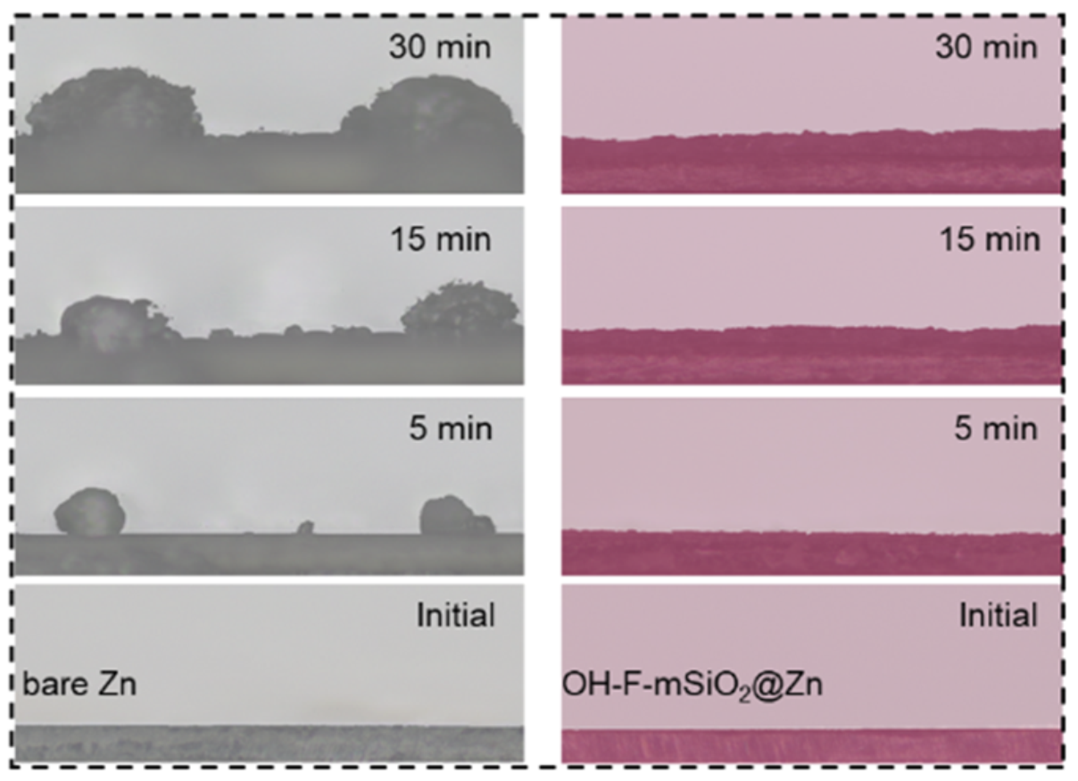通过原位电化学光镜对两种不同锌金属表面的电沉积现象进行了原位观察